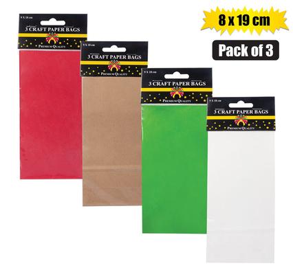 Gift-bag craft pkt ppr 3 pck sml 8x19cm